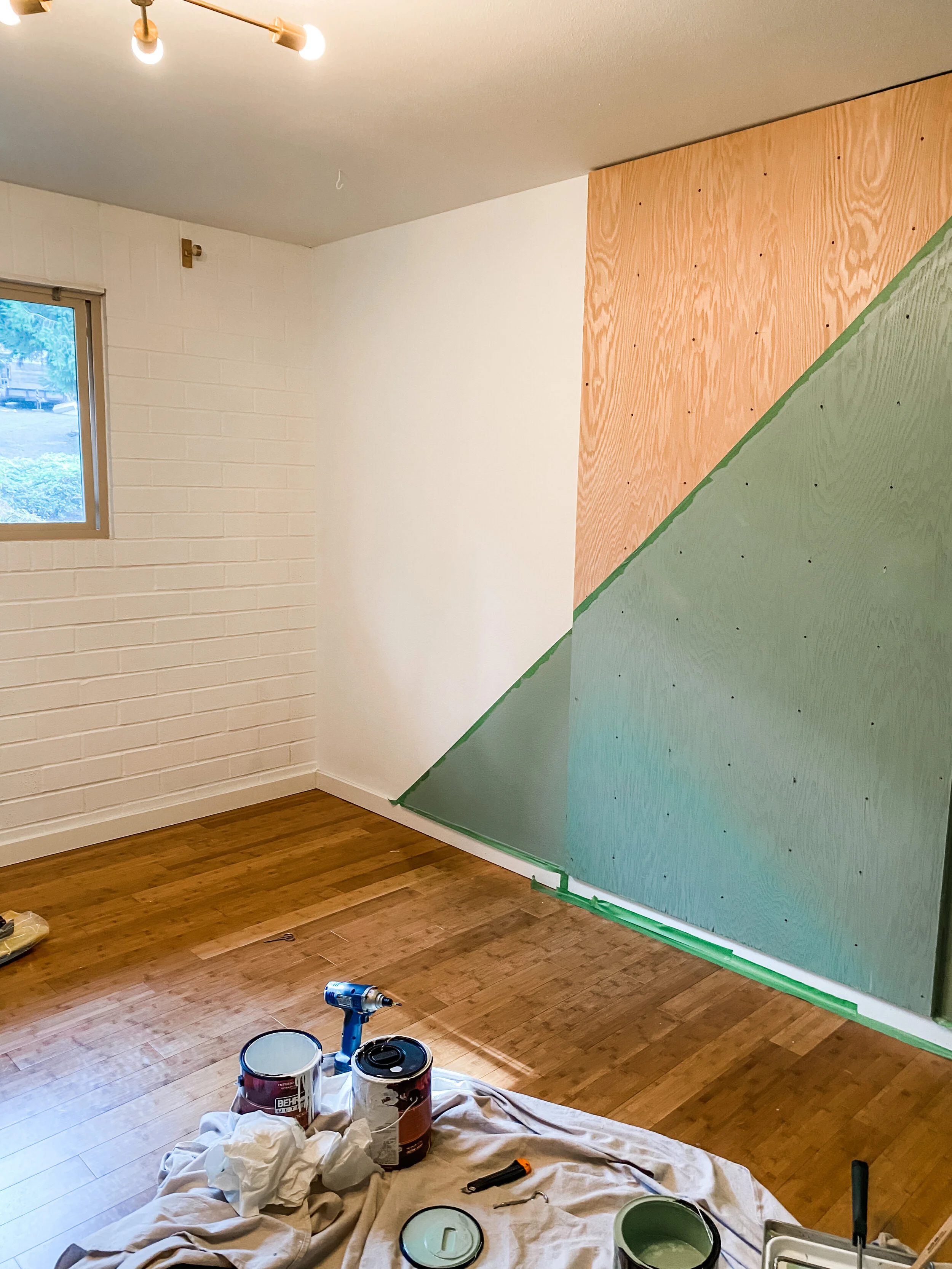 Here in the Pacific Northwest in the fall, chasing sunshine becomes a sport. Luckily, I was able to take full advantage of a couple days of sunshine over the last week and make this idea of a rock climbing wall for this Toddler Room Makeover happen! I found a beautiful piece of maple plywood to make this happen, and honestly, I really just let my creativity take control on getting it done.