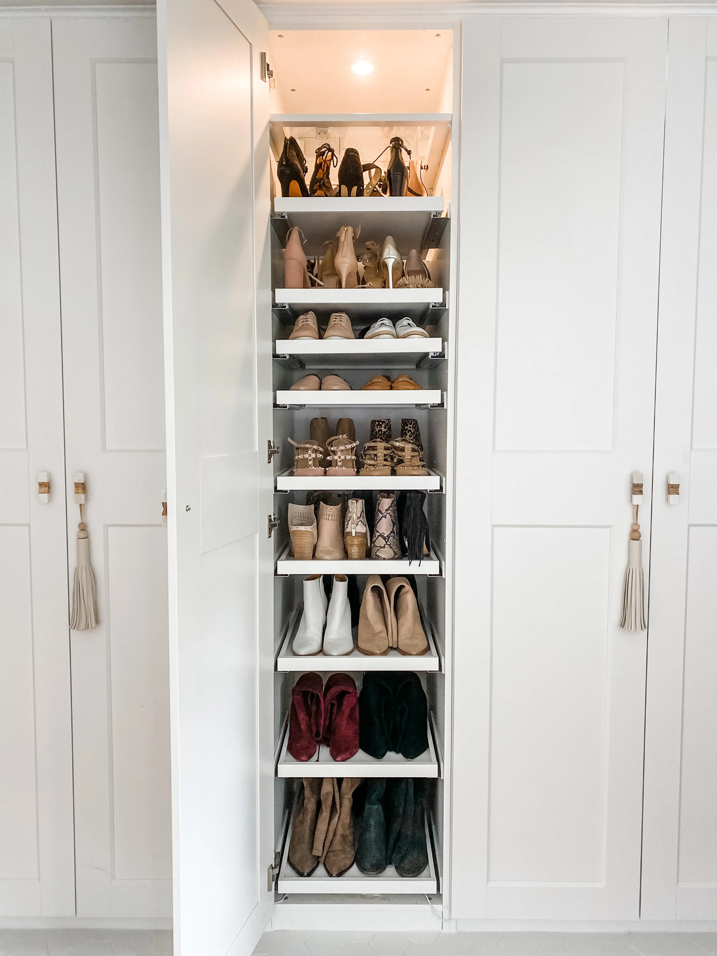 The closet felt like and entire project in it of itself. It was a much bigger undertaking that I originally expected, but it feels both functional and beautiful now. I went all out on details and storage inside. It feels like I can get dressed so much easier now being able to just open things up and see everything at once. And, I feel like the my shoes (total shoe lover here) now finally have the storage that they so deserve! I might live pretty sustainably and I might not have a huge wardrobe, but I’m pretty much always going to be “that girl” that buys the shoes.